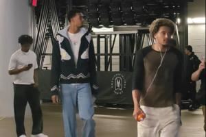 体育资讯驻美记者在达拉斯带来现场资讯,马刺客场挑战独行侠赛前,小吧在球员通道遇到了索汉和文班亚马。